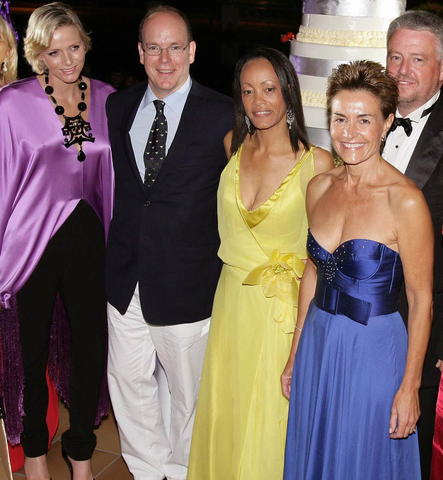 (Baroness Cecile DeMassy founder of Ladies Lunch Association d’Aide à l’Enfance et à l’Adolescence, Monaco, accompanied by ,left to right) Charlene Wittstock, future Pricess of Monaco, Prince Albert of Monaco, Baroness Cecile DeMassy, Mme. Celina deLafuente de Lavotha) Photo by: Pascale Digeaux